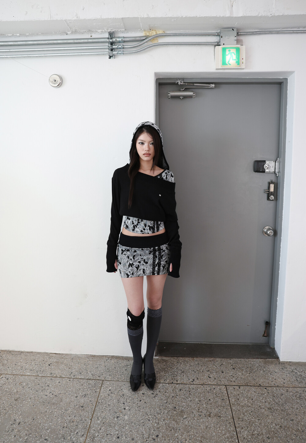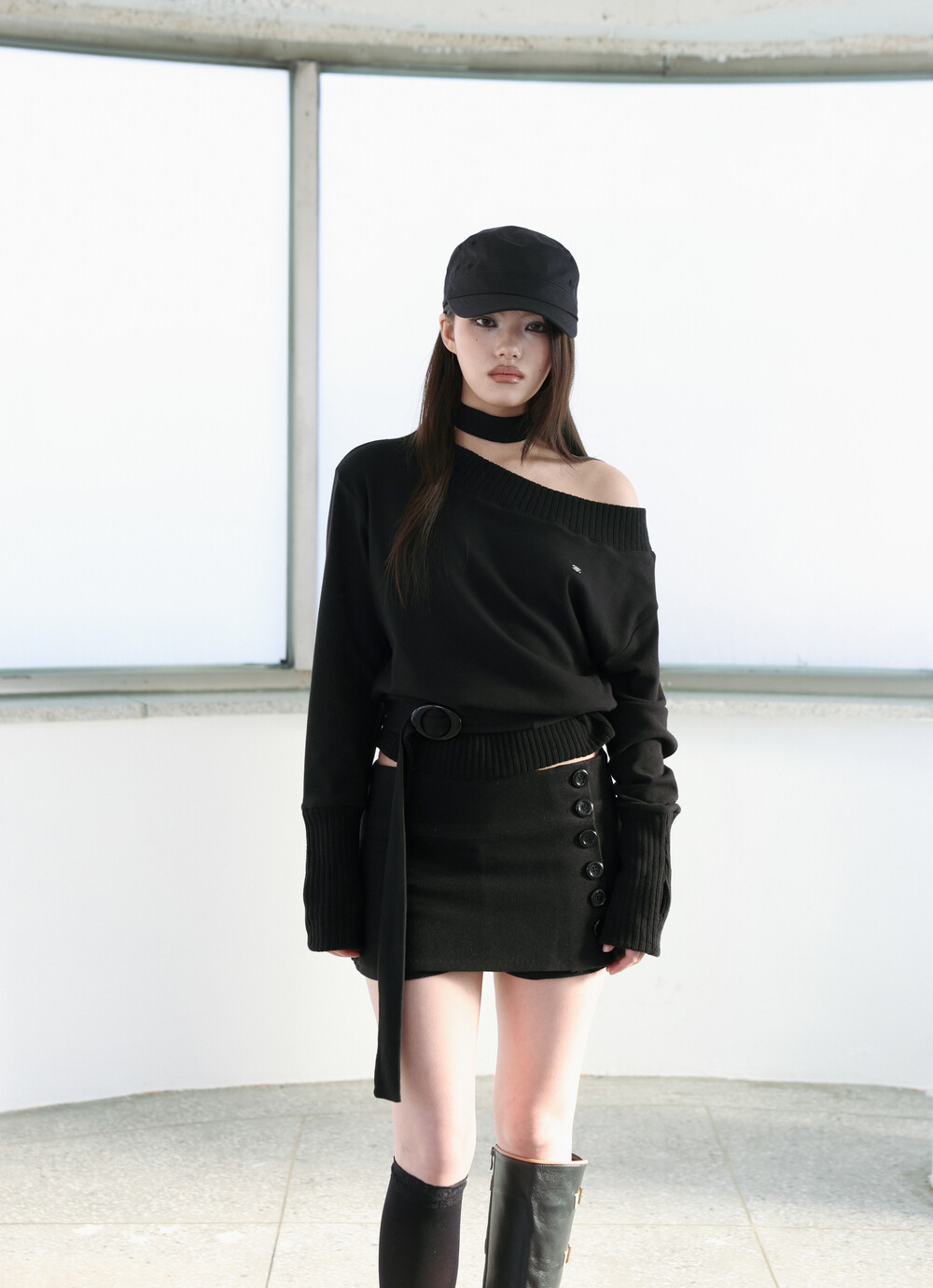 소재 믹스로 포근함을 더한 로고 오프숄더 맨투맨입니다. 허리 벨트로 실루엣을 유연하게 조절할 수 있으며, 다양한 무드의 스타일링이 가능합니다. (벨트는 탈부착 가능합니다.) 초커 세트 구성 상품이며, 넥라인과 소매단, 밑단에 니트 시보리 원단을 적용해 안정적인 구조감과 포근한 착용감을 느낄 수 있습니다. 소매단은 핸드 워머 디자인으로 손등까지 이어지게 연출 되어 실용성과 보온성, 실루엣을 모두 고려했습니다. 원 오프숄더, 오프숄더 2가지 스타일 모두 연출이 가능한 활용도 높은 상품입니다.