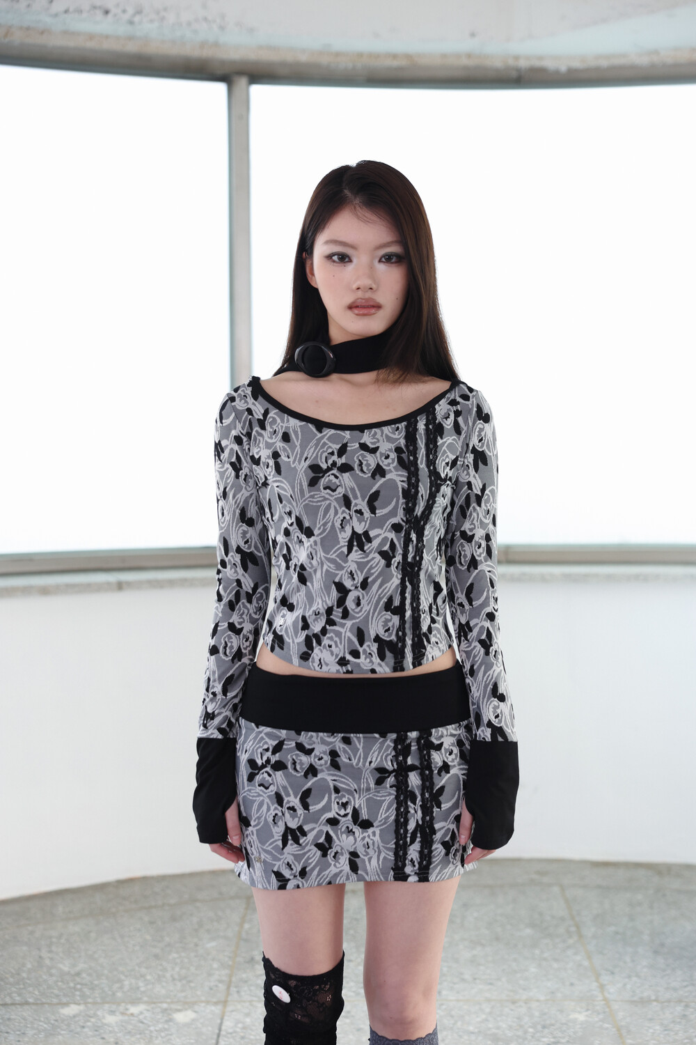 플라워 자카드 패턴 위에 전면 레이스 디테일과 로고 펜던트를 더해 미애만의 섬세한 분위기를 살린 상의입니다. 넓은 라운드넥 라인이 목선과 쇄골을 부드럽게 드러내며, 넥 라인에서 자연스럽게 이어지는 후드 디자인이 유니크한 무드를 완성합니다. 밑단은 라운드 라인으로 마무리해 허리가 슬림해 보이도록 연출됩니다. 소매는 워머 디테일로 디자인해 손끝까지 이어지는 라인을 정리해 주며, 블랙 원단으로 배색을 주어 전체적인 룩에 깊이감과 대비를 더했습니다. 신축성 좋은 소재로 사이즈에 구애 없이 편안한 착용이 가능하며, 동일 패턴의 치마와 셋업으로 착용하면 한층 완성도 높은 스타일링이 가능합니다.