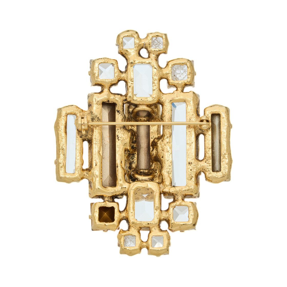 생로랑 크리스탈 메달리온 브로치 메탈 블랙 다이아몬드 크리스탈 패티네이티드 골드