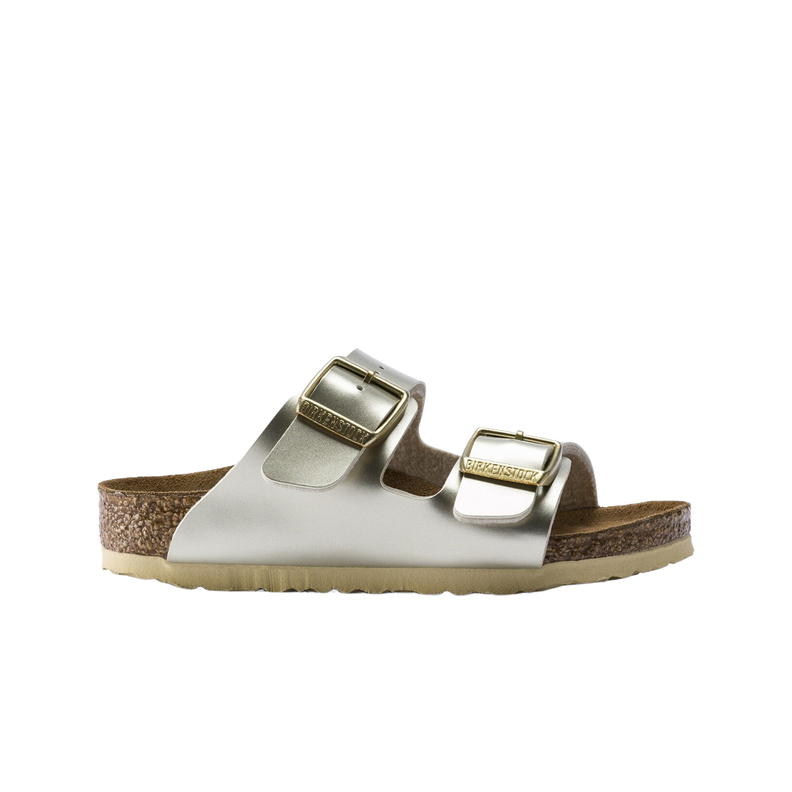 (Kids) Birkenstock Arizona Birko Flor Electric Metallic Gold - Narrow