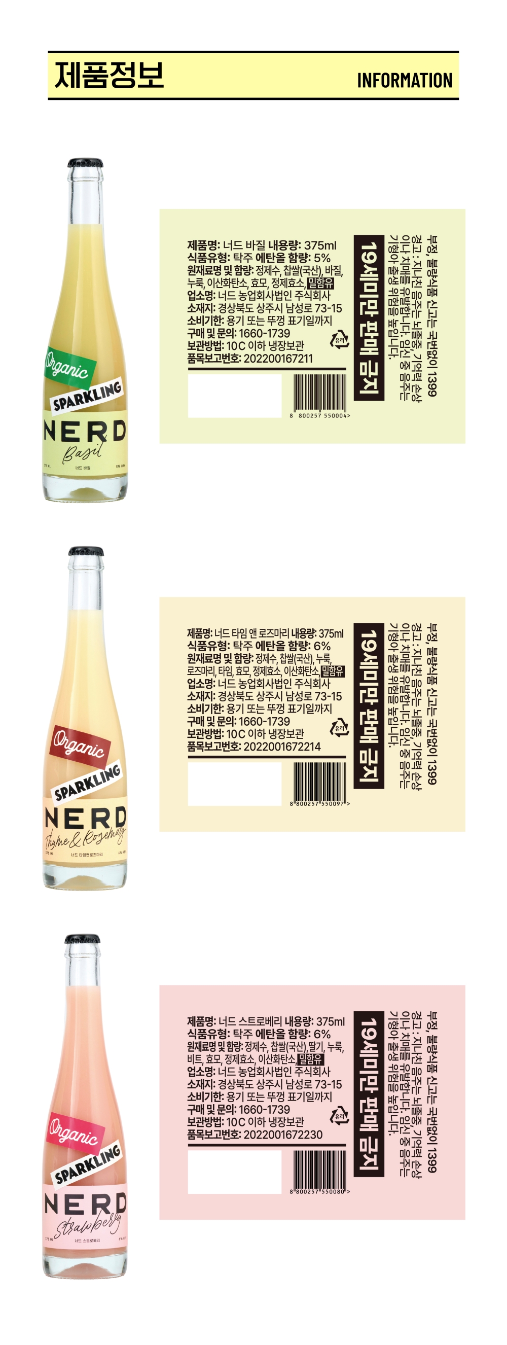 너드 스파클링 3병 세트 (바질, 타임, 스트로베리) 375ml