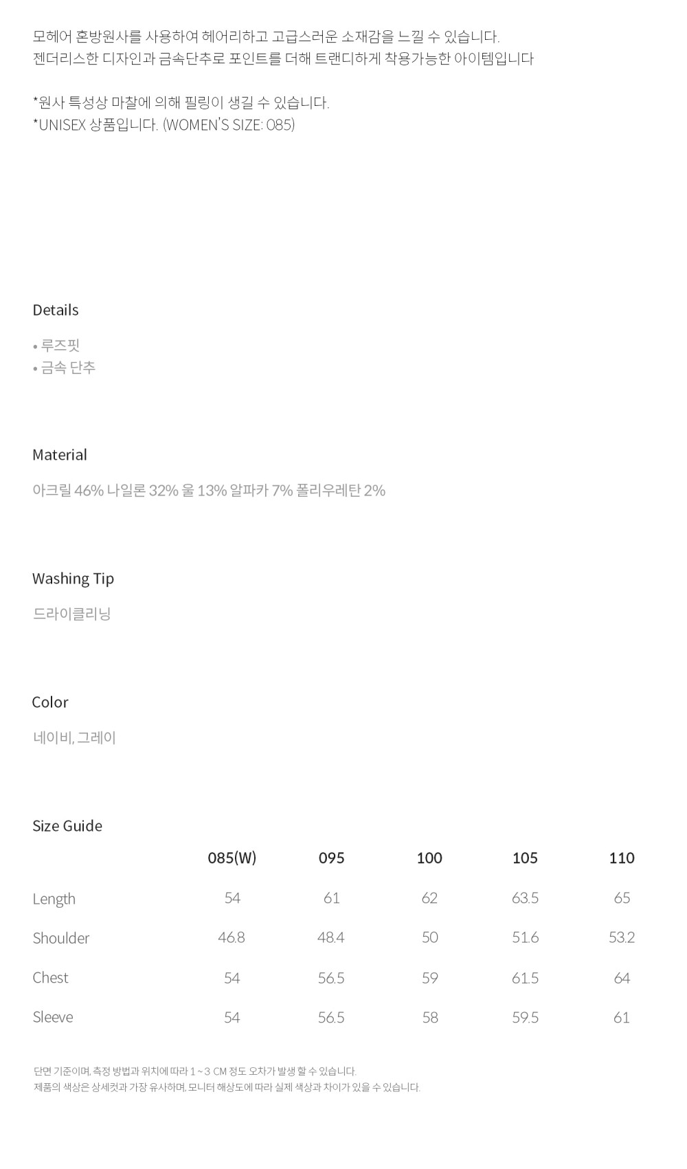 티엔지티 오버사이즈 모헤어 가디건 네이비