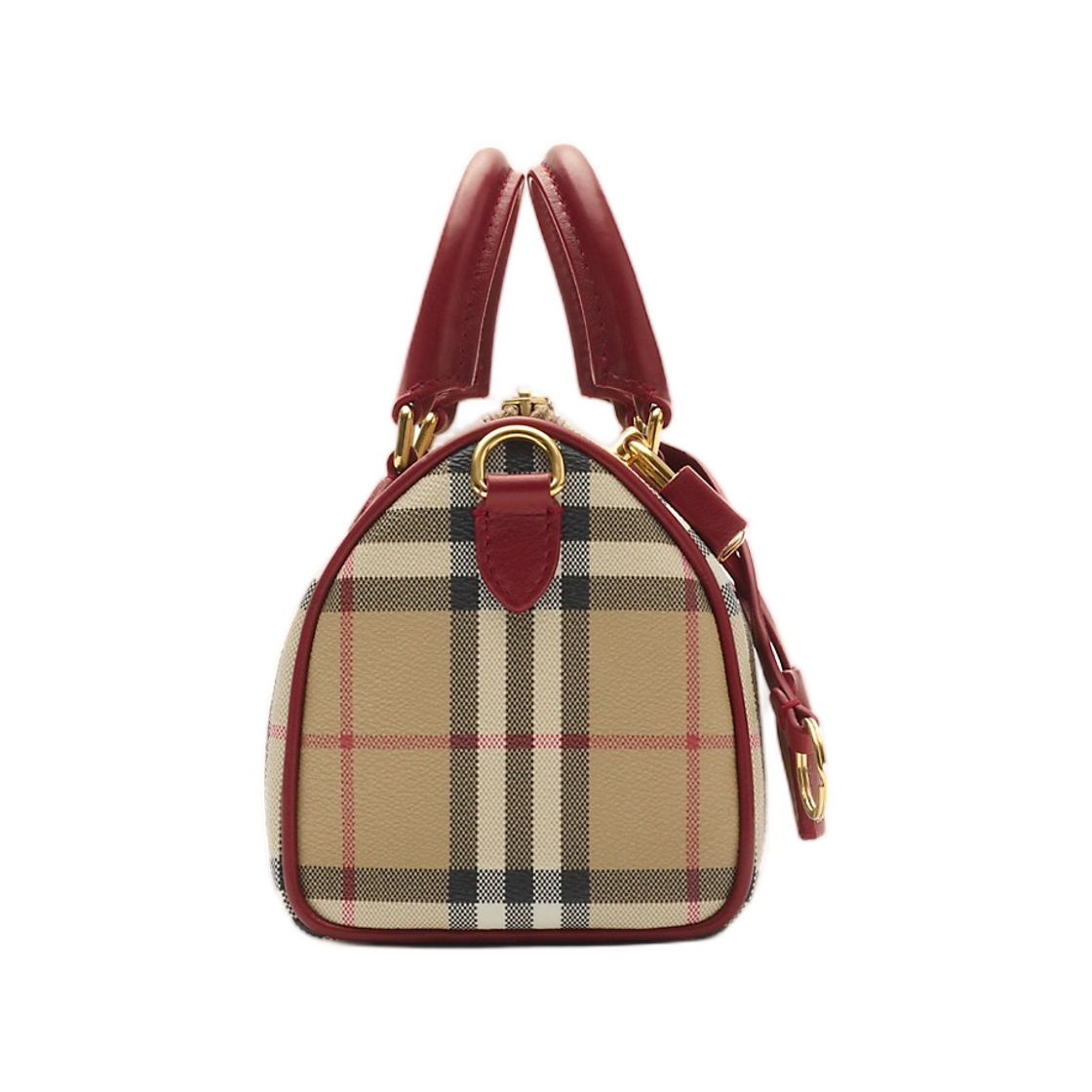 Burberry Mini Check Bowling Bag Archive Beige Ruby Red