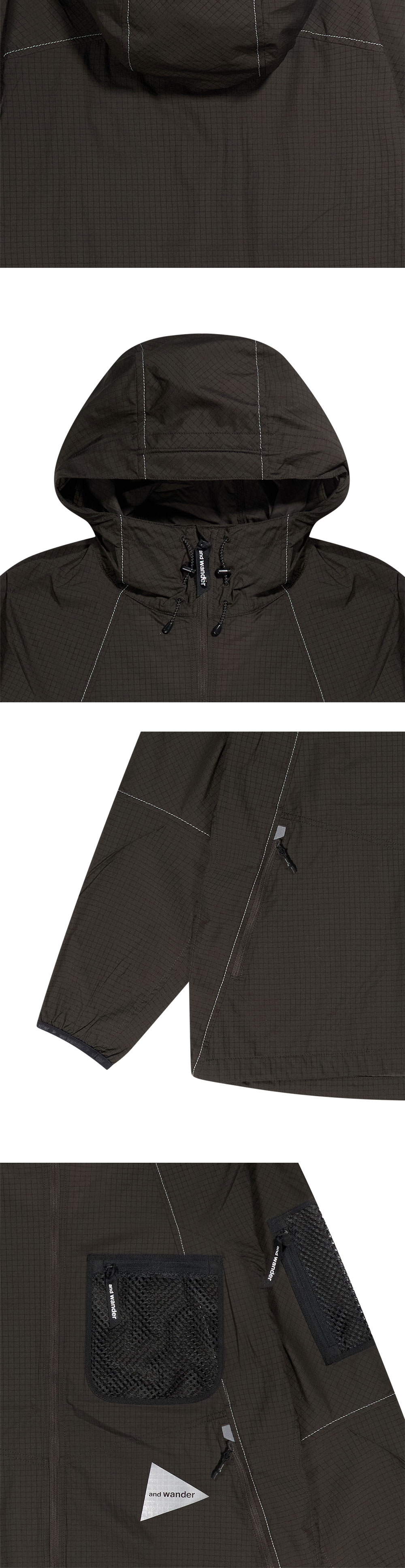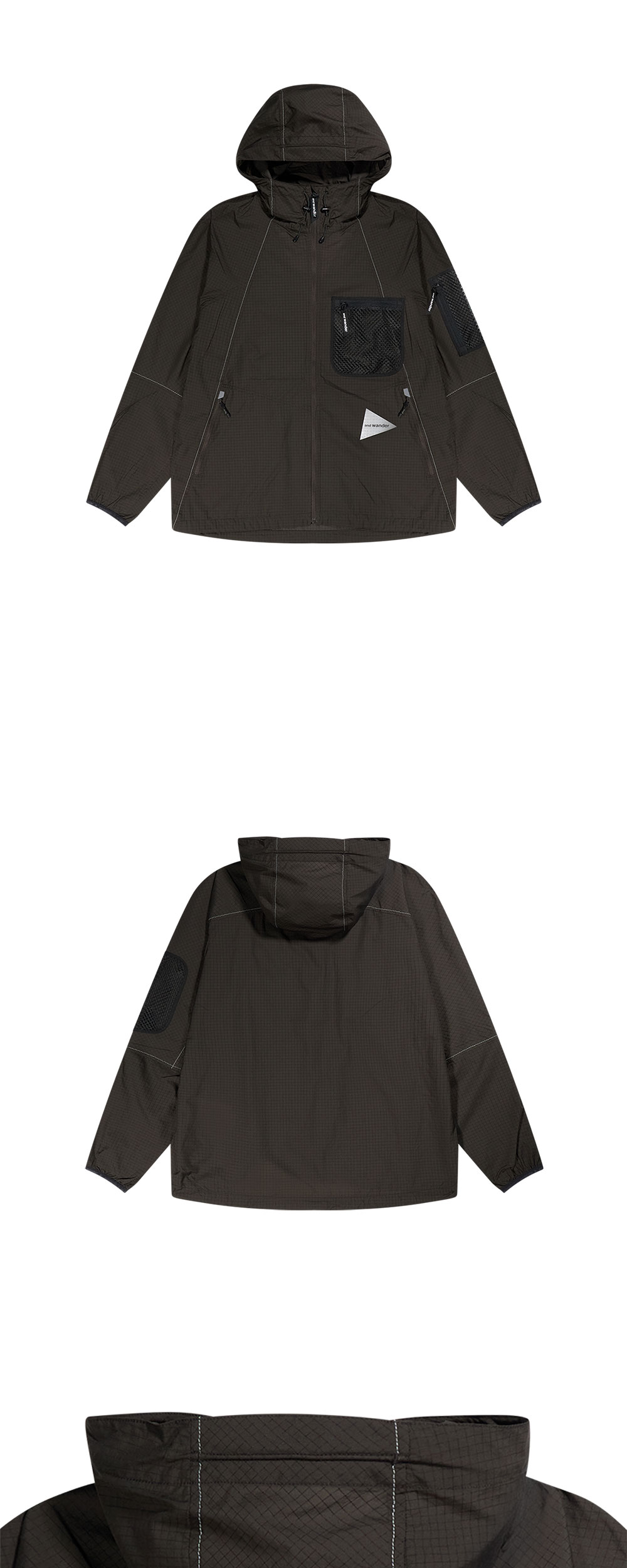 앤드 원더 010 브레스 립 후디 차콜 입니다. - 서로 다른 굵기의 실을 사용한 요철감 있는 립스탑 소재로 제작 - 뛰어난 통기성과 거친 환경에서도 견디는 강력한 내구성 - 어깨와 소매가 하나로 이어진 패턴 설계를 적용하여, 등산이나 클라이밍 시 팔의 움직임이 자유로움 - 가슴과 왼쪽 소매에 위치한 메쉬 패치 포켓을 포함해 총 4개의 지퍼 포켓 - 브랜드의 상징인 삼각형 로고와 주요 봉제선에 리플렉티브(반사) 스티치를 적용