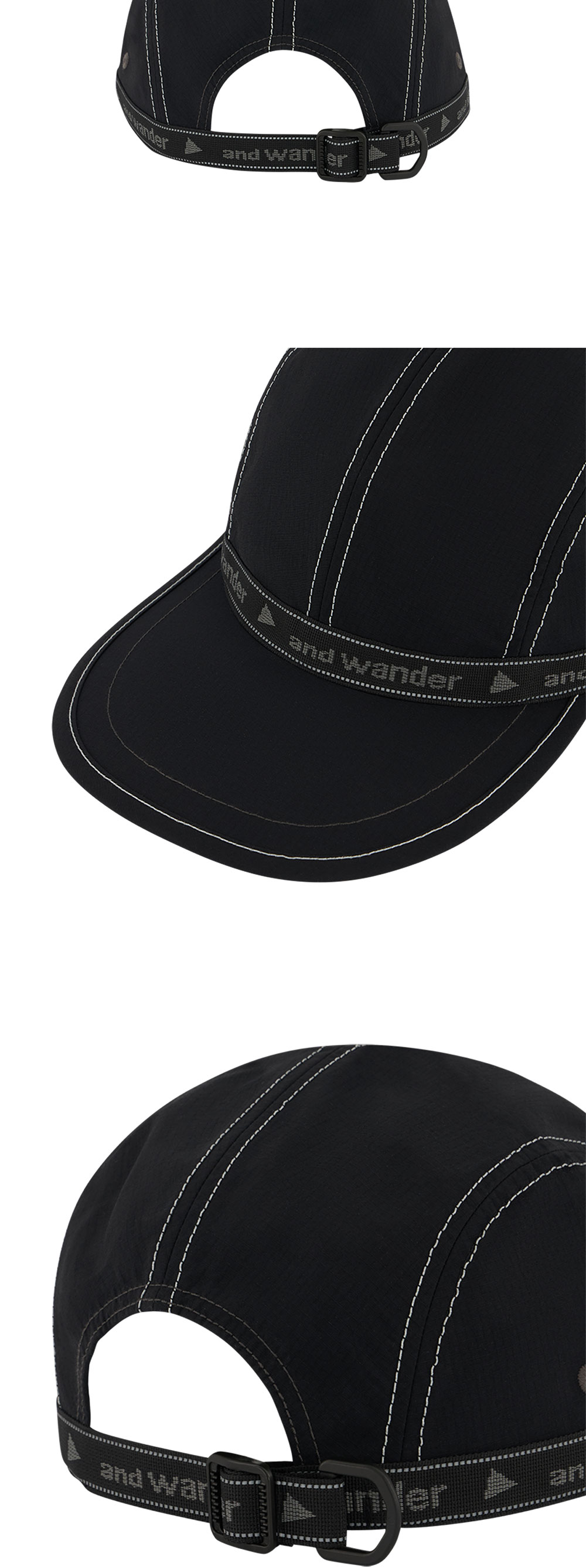 앤드 원더 157 JQ 테이프 캡 블랙 입니다. - 리사이클 나일론 소재로 가벼운 발수 및 우수한 내구성 제공 - 메쉬 안감을 적용해 우수한 흡습속건과 쾌적한 착용감 유지 - 하단 자카드 로고 테이프와 야간 시인성을 높이는 리플렉티브 스티치 - 뒷면 버클 스트랩으로 간편한 사이즈 조절 가능 *모델 컷은 제품의 실제 컬러와 다른 점 참고 부탁드립니다.