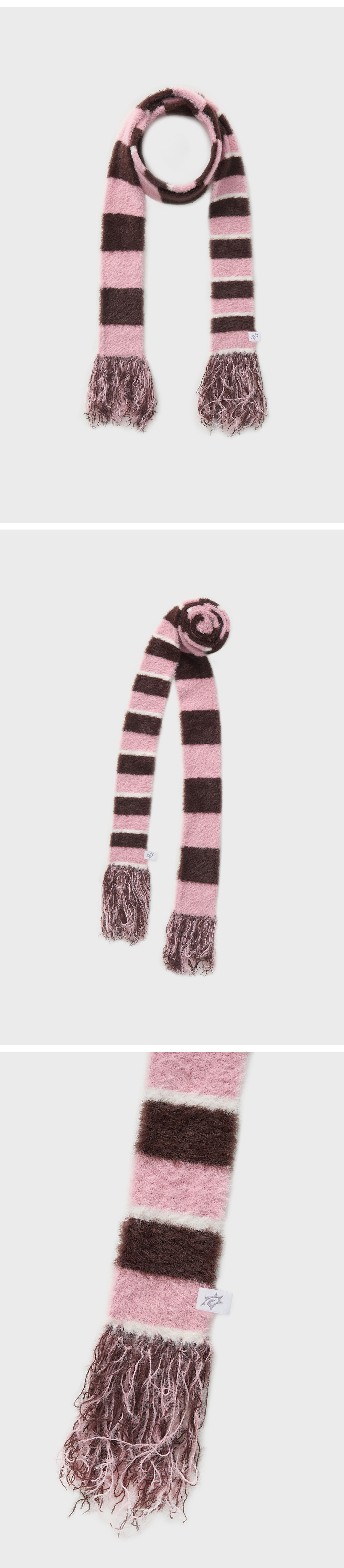 - 포근한 헤어리 니트 소재로 따뜻한 착용감 - 양쪽 끝 프린지 디테일 - 가볍고 볼륨감 있는 착용감 - 포인트 컬러 배색으로 러블리한 무드 연출 - 썬릿 포인트 라벨 디테일 - Made in China Model Size 아야네(단발)/ 혜빈(긴헤어) 155CM 높이 175 폭 6 ※ 제품 측정 방법에 따라 ±1~2cm 오차가 있을 수 있습니다. Fabric Nylon 100% - 본 제품은 찬물 또는 30℃ 이하의 미온수로 중성세제를 사용해 단독 손세탁을 권장드립니다. - 제품의 형태 보존을 위해 건조기 사용은 절대 금지하며, 그늘에서 자연건조해주세요. - 보관 시 직사광선을 피해주시고, 접히거나 눌리지 않도록 주의해 주십시오.