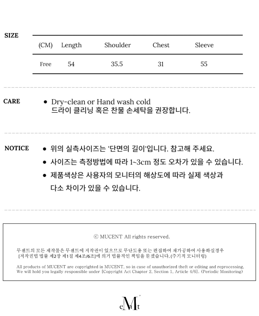 ┃Detail • 전면부 무센트 시그니처 로고 자수 • 와이드한 유넥 디자인으로 페미닌한 무드 • 단품 또는 이너로 활용 가능한 아이템 • 착용 시 피부에 부드럽게 밀착되는 터치감 • 슬림한 아웃핏 연출 • 다양한 하의와 어울리는 베이직한 아이템 ┃Material : Polyester 100% ┃Care : Dry cleaning - 무센트는 말기의 행성인 이 지구에서 지속 가능한 옷들을 고민합니다. 우리는 신념을 소비하는 미닝아웃을 지지합니다.