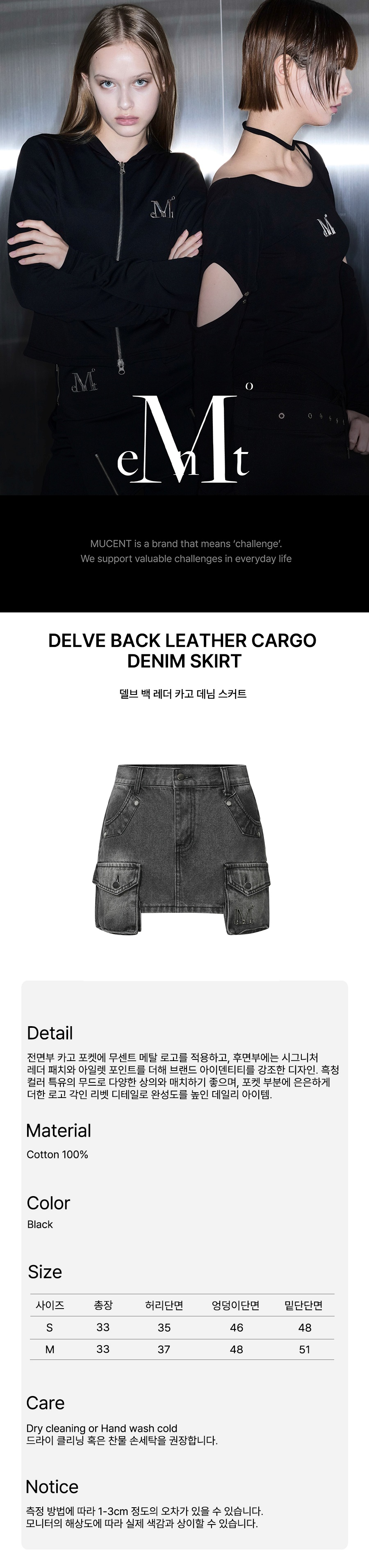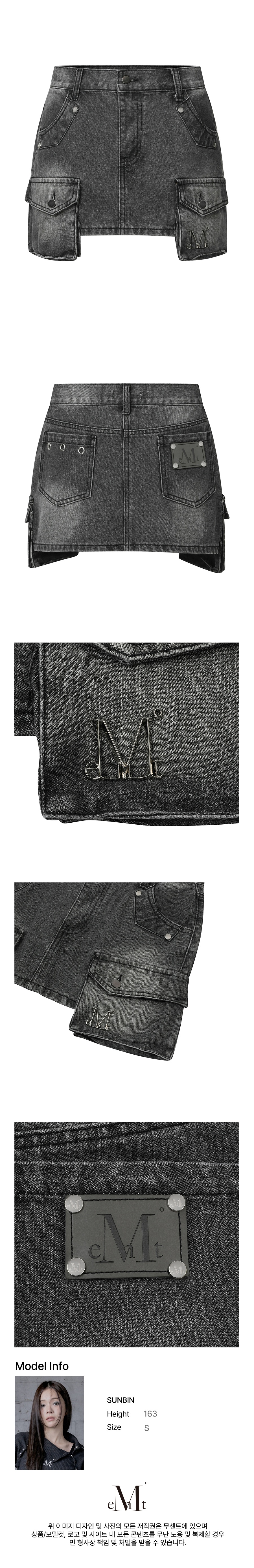 무센트 델브 백 레더 카고 데님 스커트 블랙