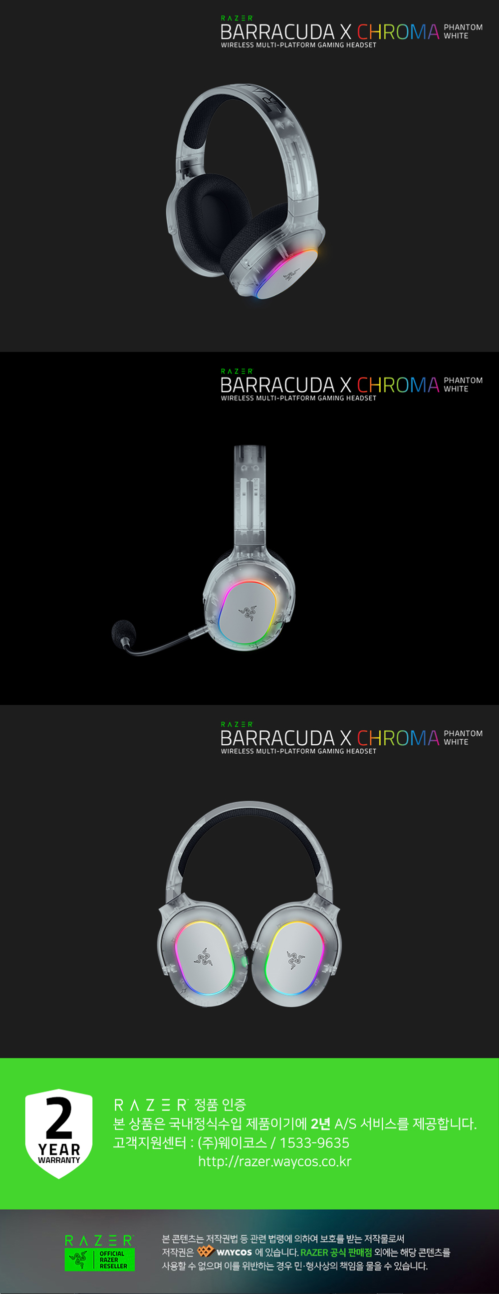 레이저 바라쿠다 X 크로마 팬텀 화이트 에디션 게이밍 헤드셋