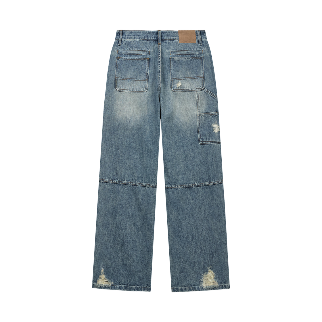 마뗑킴 빈티지 워시드 더블 니 데님 팬츠 블루