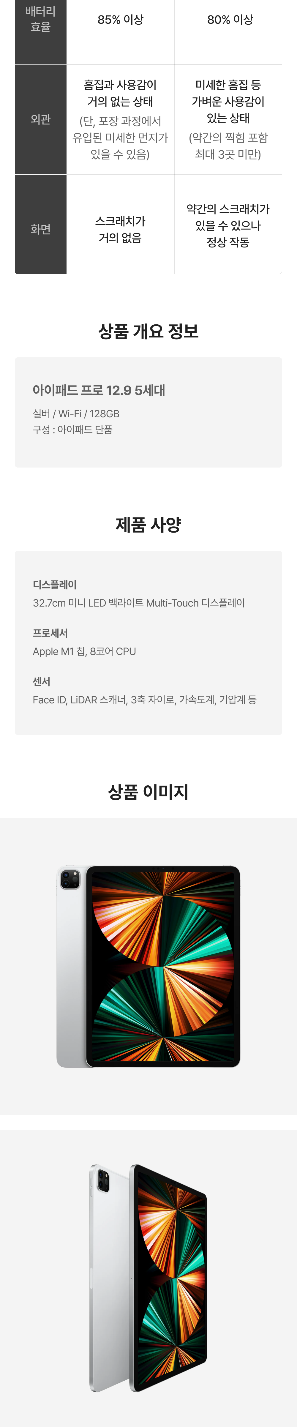 [S등급] 리퍼비시 아이패드 프로 12.9인치 5 celluar 512기가 실버
