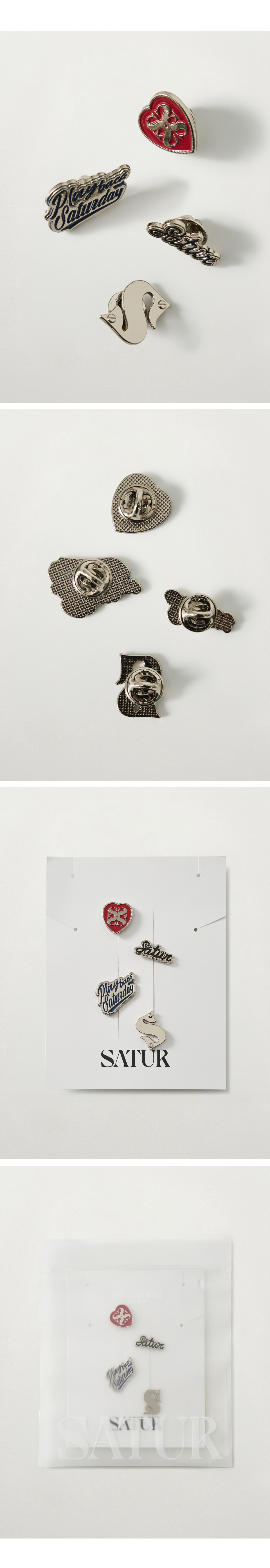 SATUR Retro Graphic Brooch Set Silver