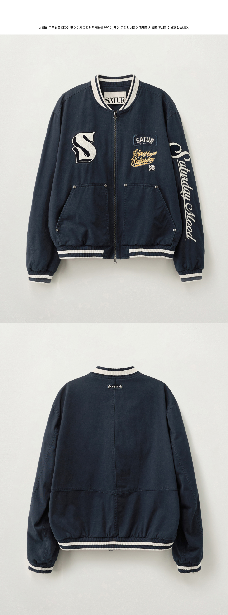 [예약배송] SATUR 90s Playback Varsity Jacket Navy