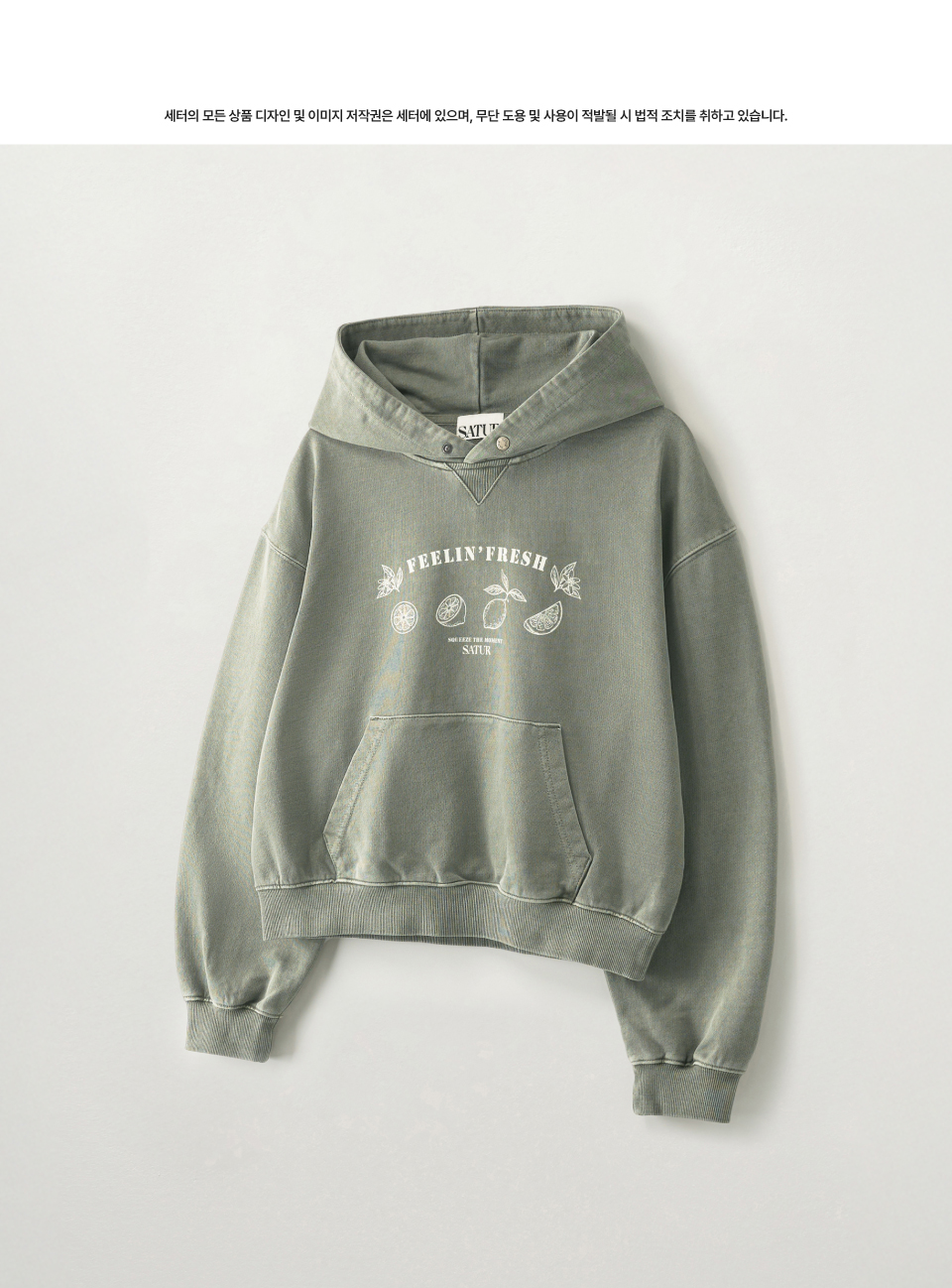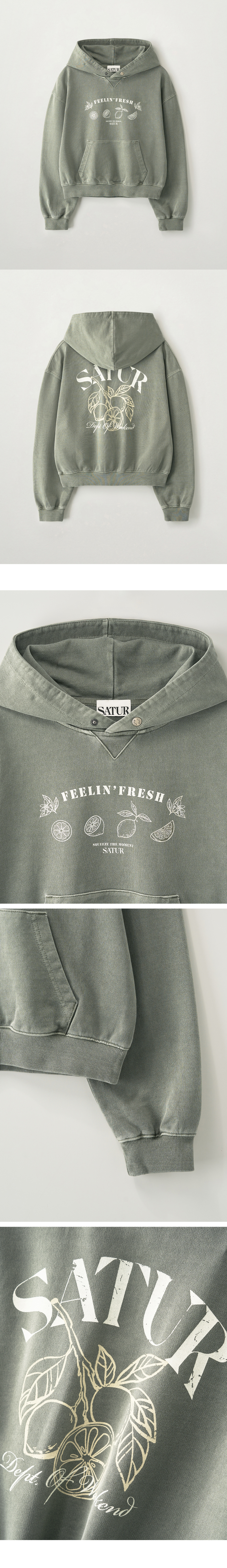 SATUR W Citron Drawing Washed Crop Hoodie Charcoal