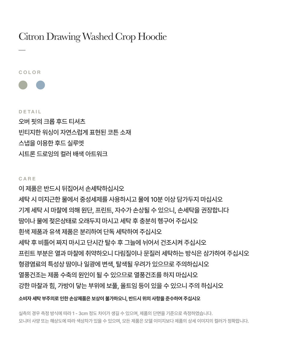 세터 우먼 시트론 드로잉 워시드 크롭 후드 티셔츠 차콜