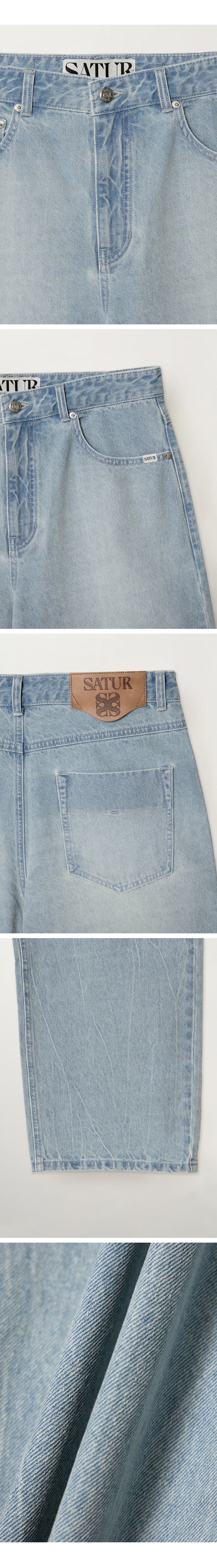 SATUR Wrinkle Washed Denim Pants Light Blue