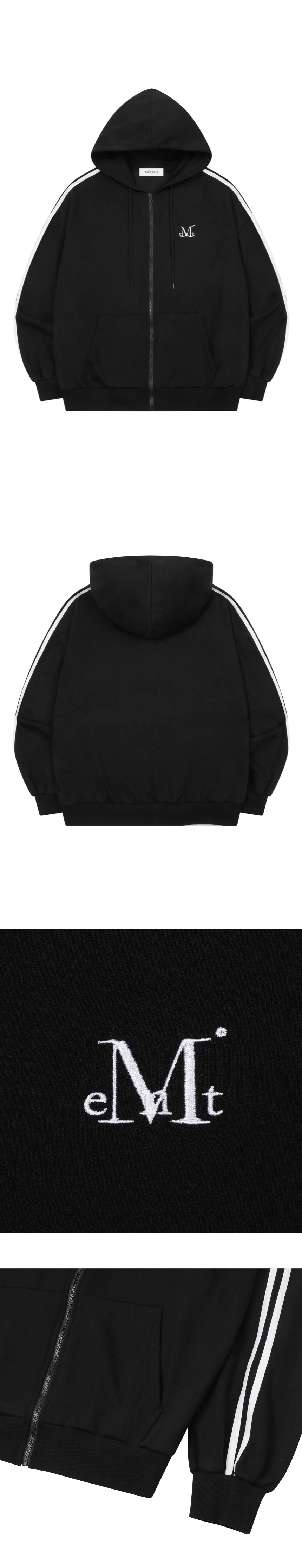 MUCENT Larine Track Line Hood Zip-Up Unisex (2Color) Black