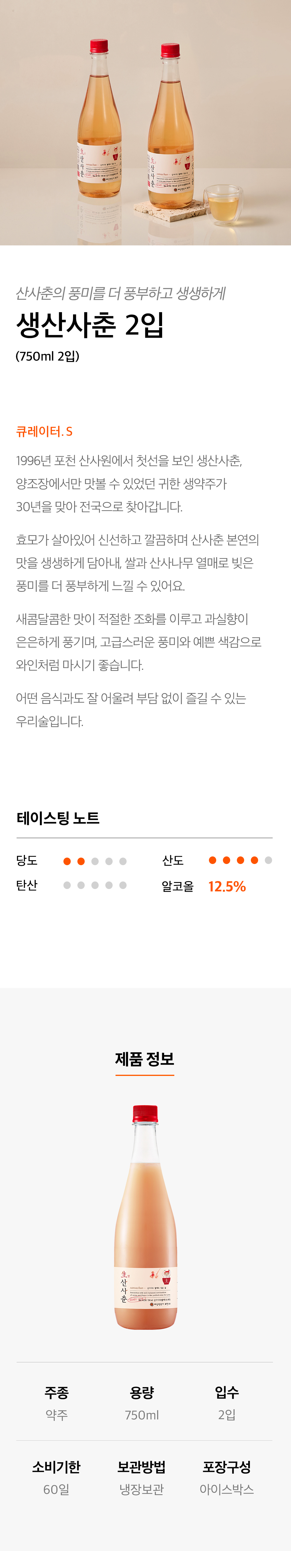 배상면주가 생산사춘 12.5도 750ml x 2입 약주