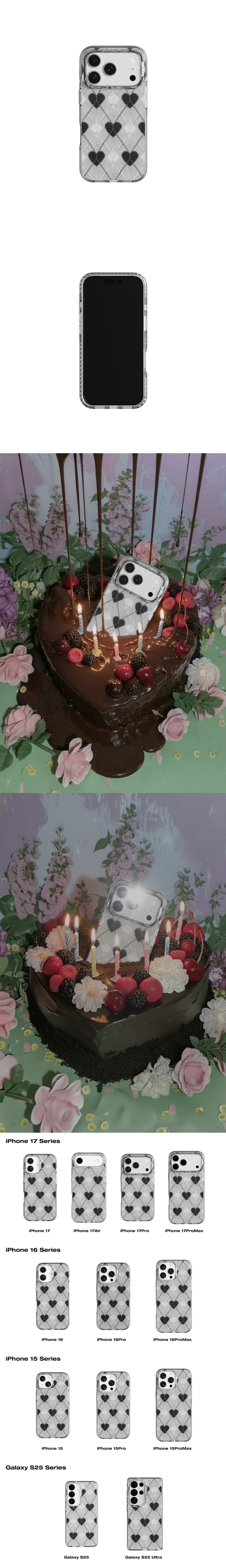그래그 프레임 패턴 케이스 클리어 블랙 - 텍스처 하트