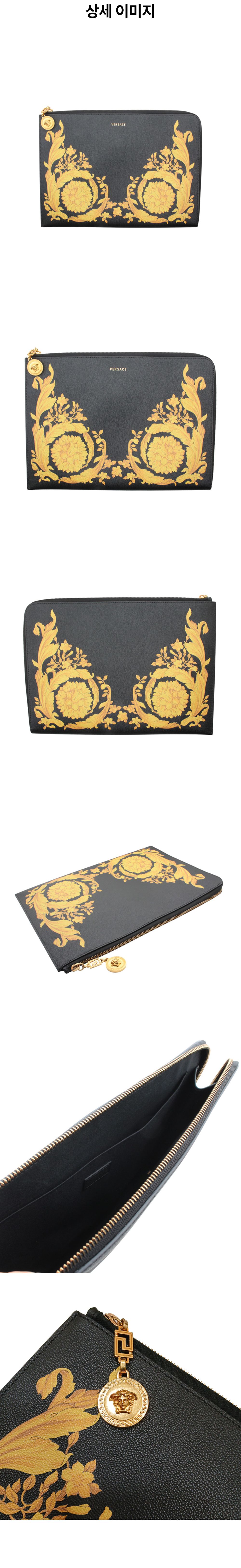 베르사체 쇼라인 블랙 레더 프린트 클러치백