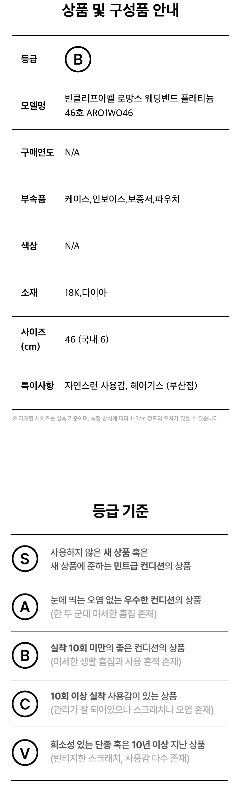 반클리프아펠 로망스 웨딩밴드 플래티늄 46호 ARO1WO46