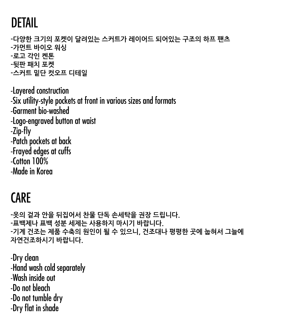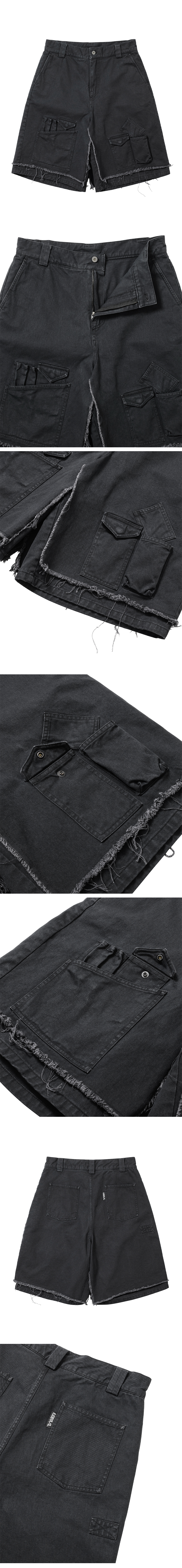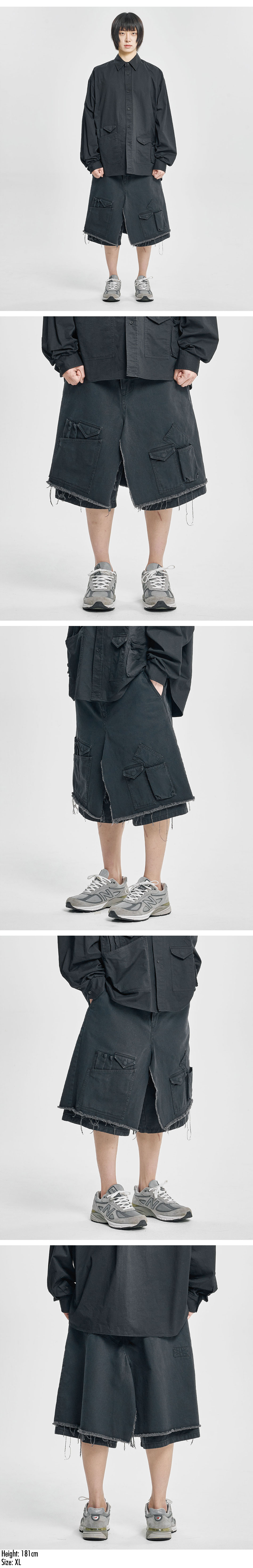 아조바이아조 워시드 레이어드 카고 스커트 쇼츠 블랙