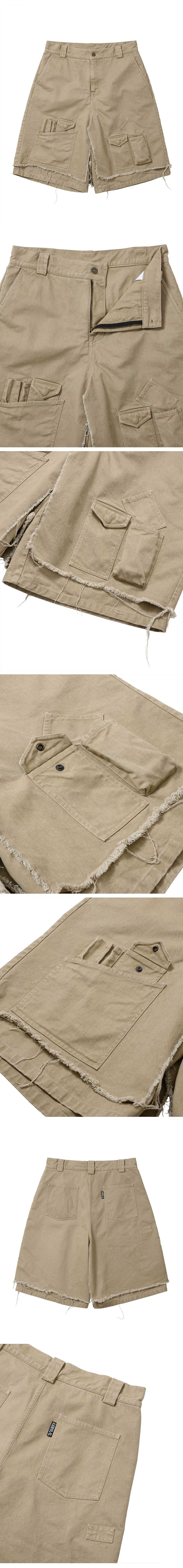 아조바이아조 워시드 레이어드 카고 스커트 쇼츠 베이지