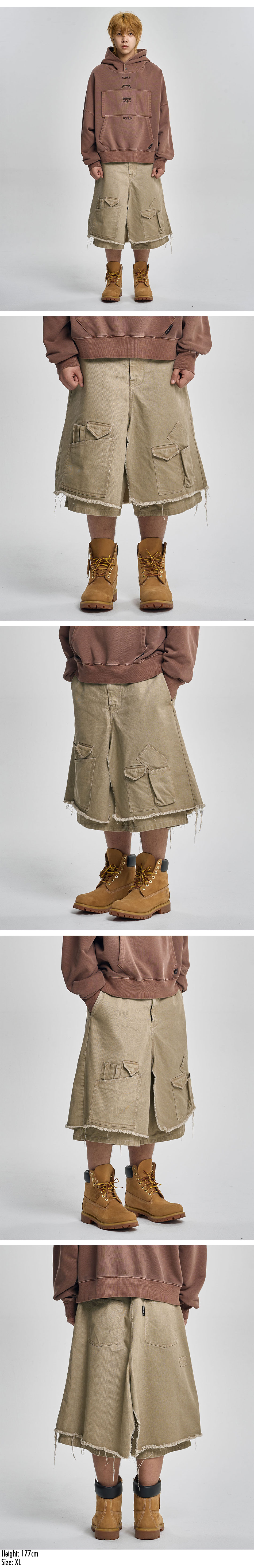 AJOBYAJO Washed Layered Cargo Skirt Shorts Beige