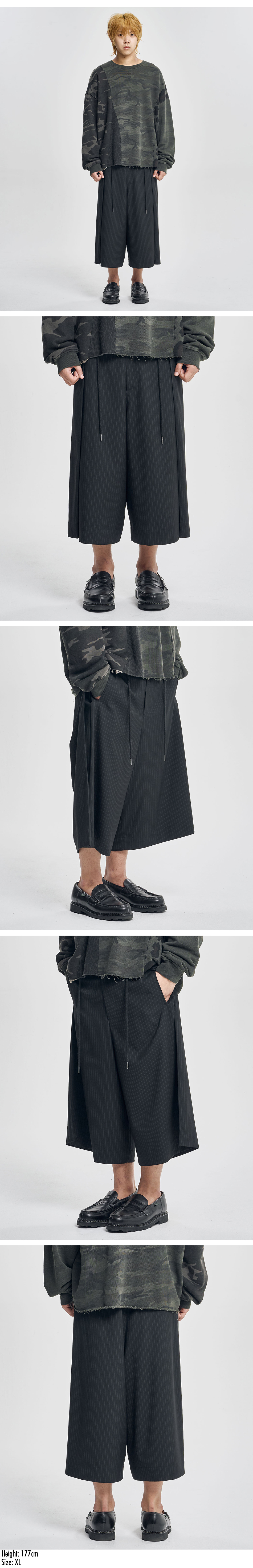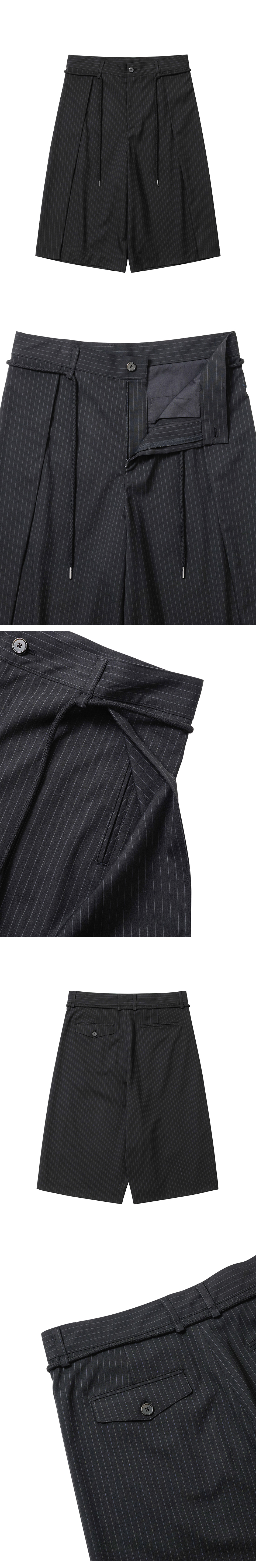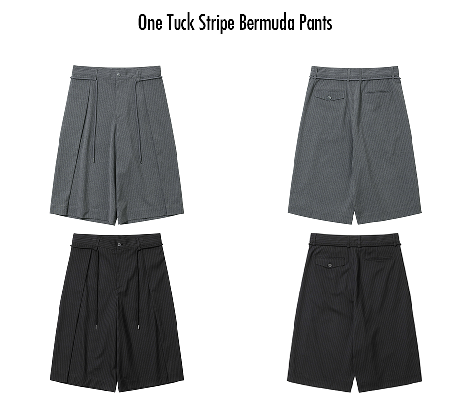 AJOBYAJO One Tuck Stripe Bermuda Pants Black