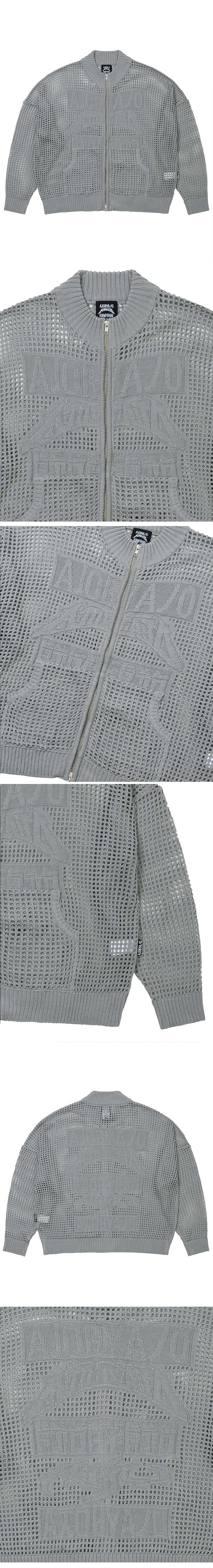 아조바이아조 토탈 로고 드롭 니들 집업 라이트 그레이