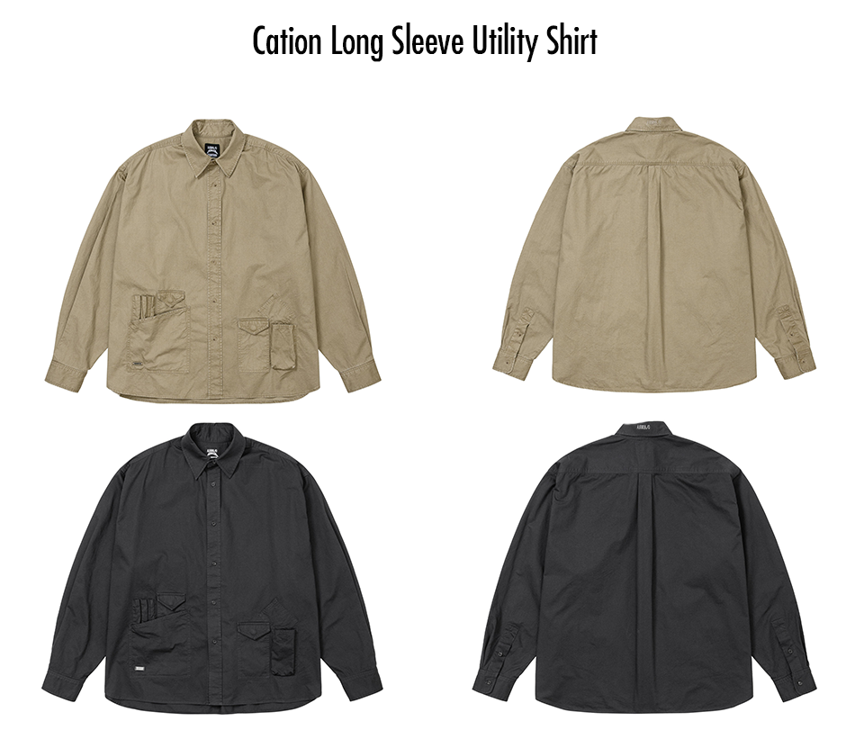 AJOBYAJO Cation Long Sleeve Utility Shirt Black