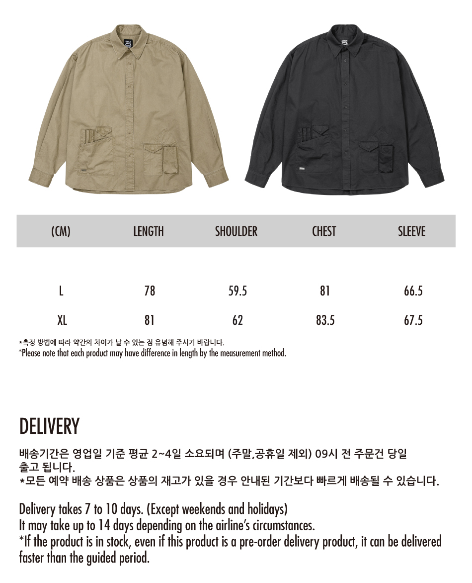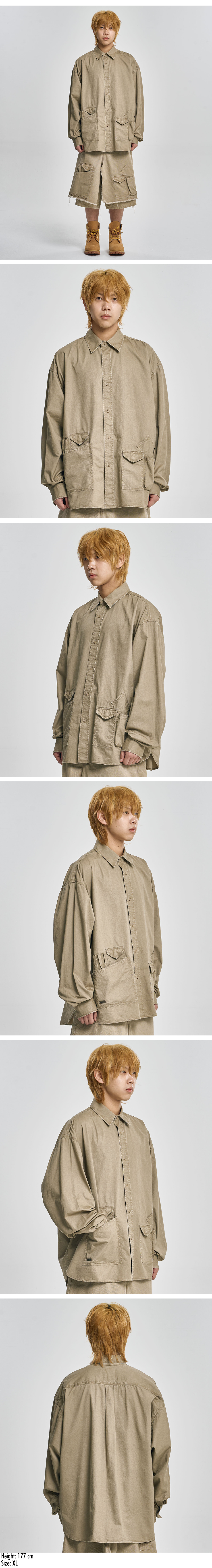 AJOBYAJO Cation Long Sleeve Utility Shirt Beige