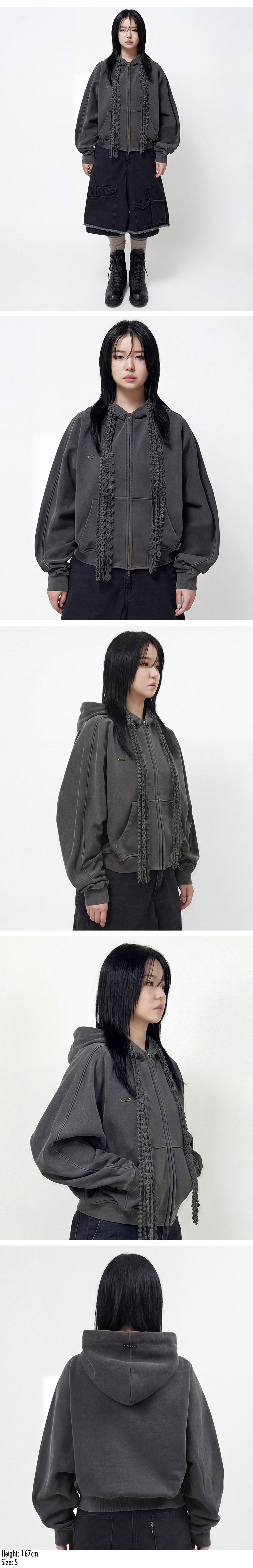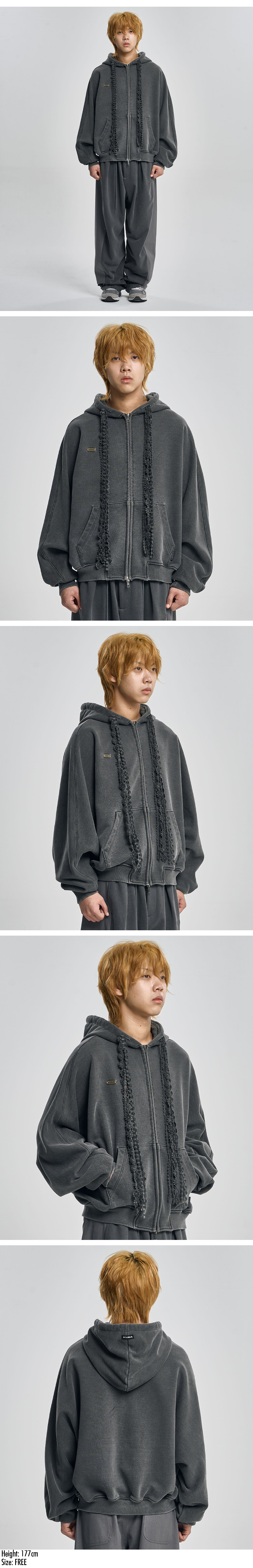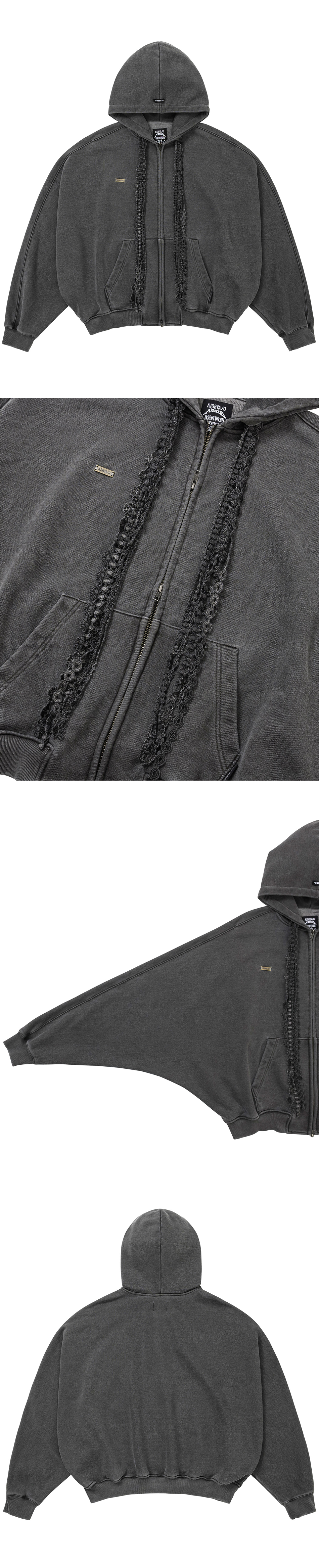 AJOBYAJO Laced Multi-Drawstring Zip-Up Hoodie Charcoal