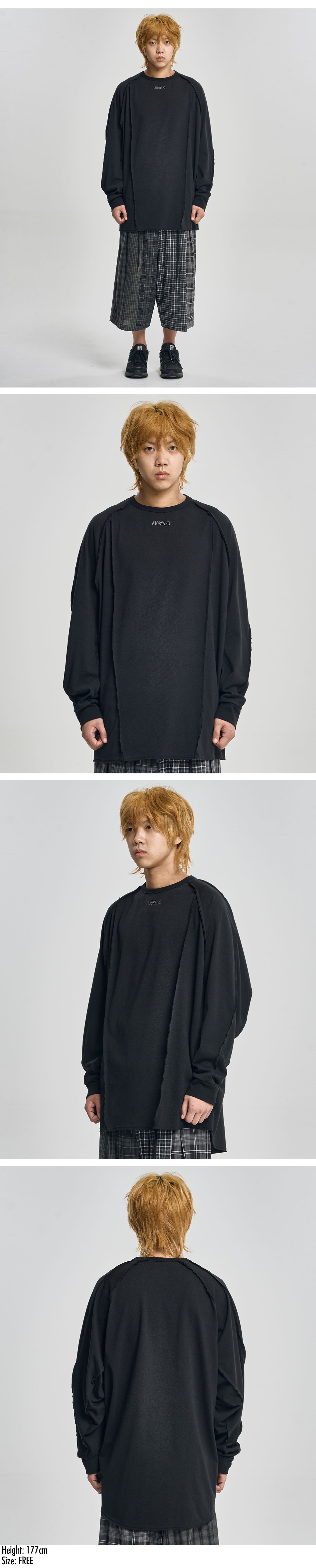 AJOBYAJO Raw Edge Sculpted Long Sleeve Black