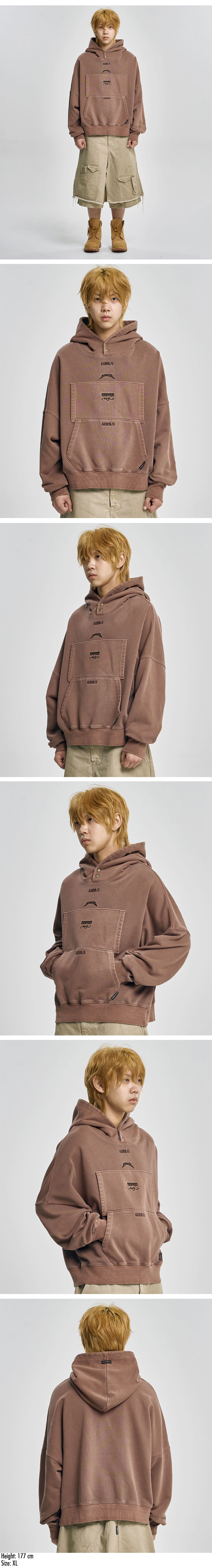 아조바이아조 듀얼 포켓 워시드 후디 브라운