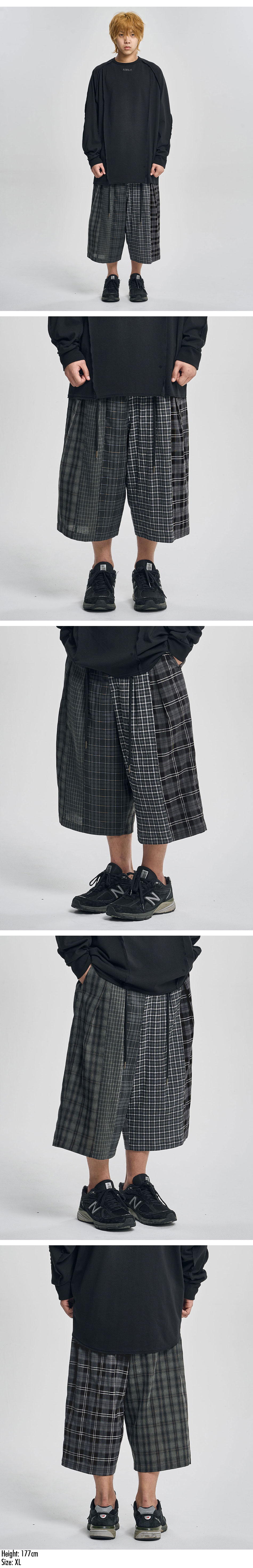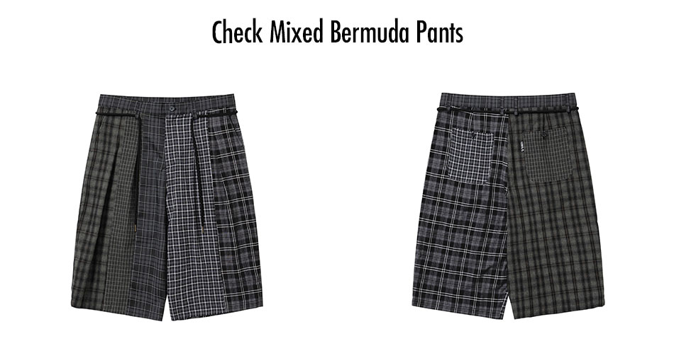 AJOBYAJO Check Mixed Bermuda Pants Black