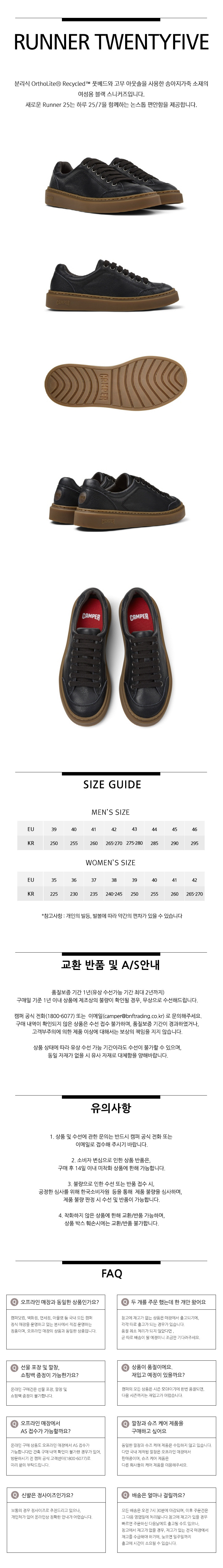 캠퍼 여성 러너 트웬티파이브 스니커즈 블랙