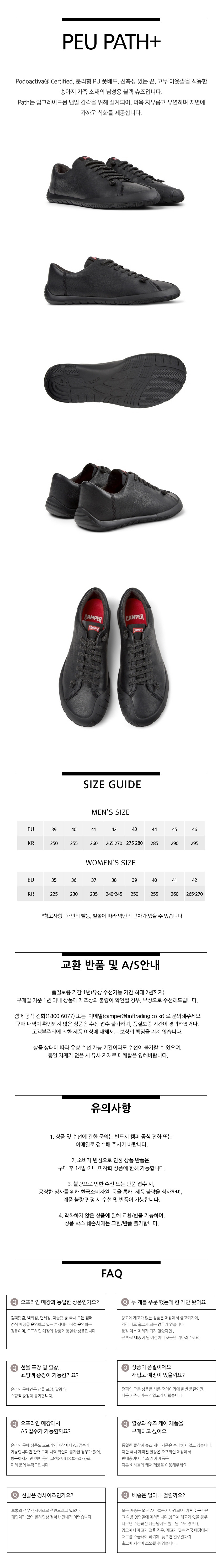캠퍼 남성 페우 패스+ 스니커즈 블랙