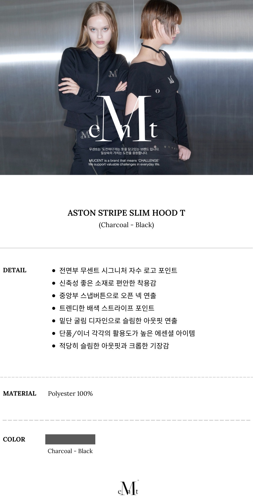 무센트 아스톤 스트라이프 슬림 후드 티 차콜 - 블랙