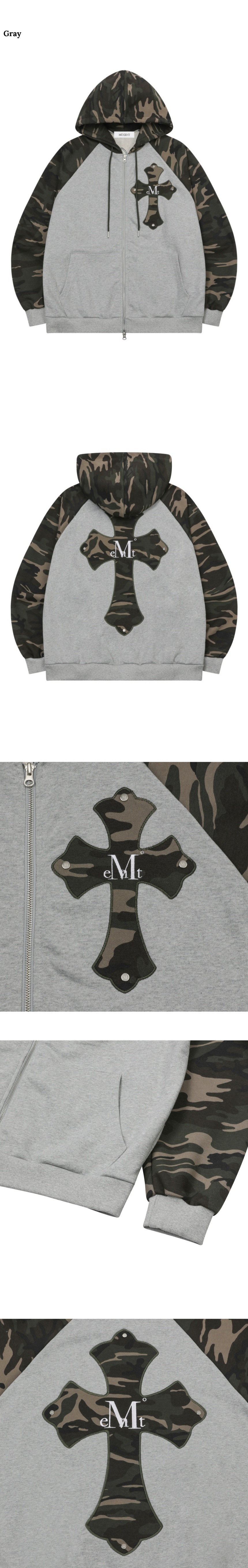 MUCENT Livera Camo Cross Raglan Hood Zip-up Unisex (2Color) Gray