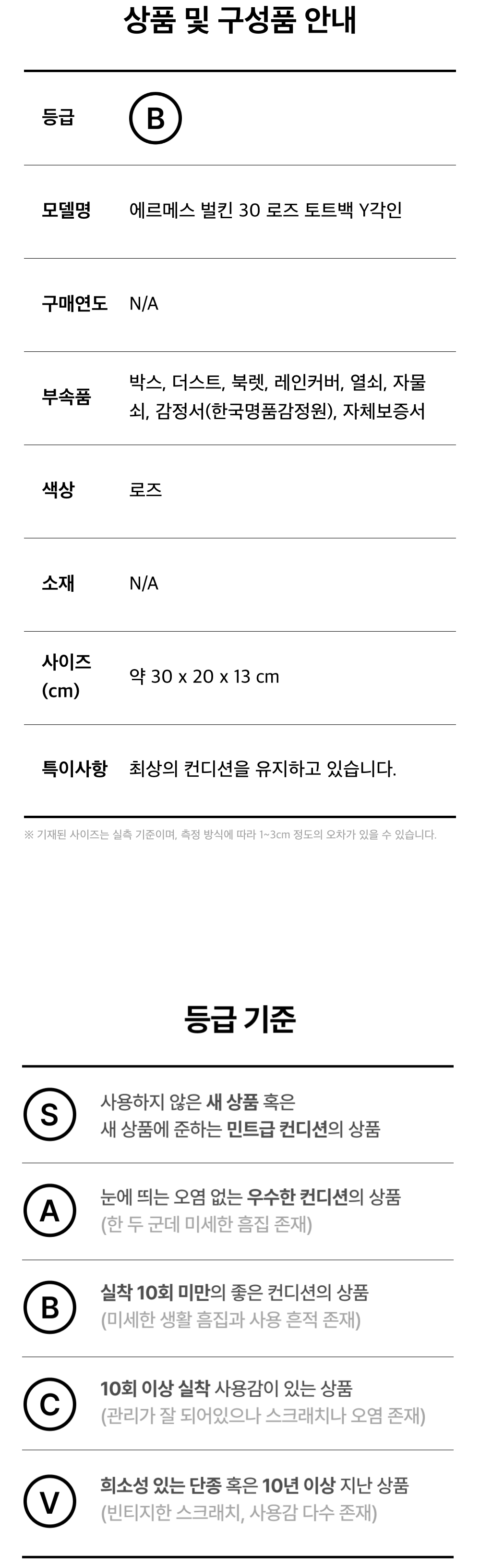 에르메스 벌킨 30 로즈 토트백 Y각인