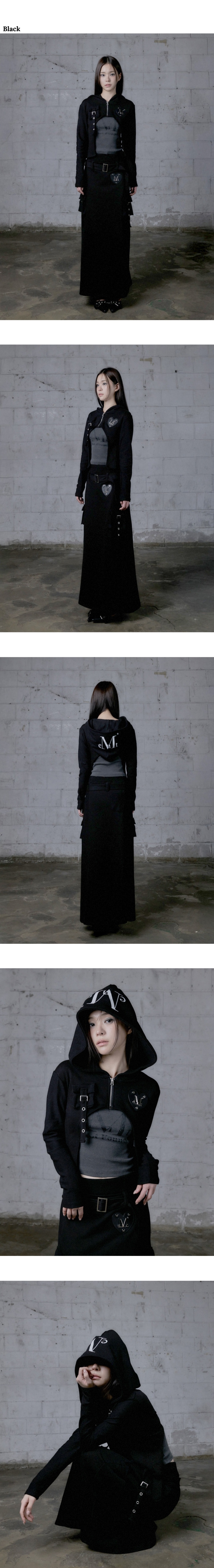 무센트 로번트 메탈 로고 볼레로 후드 집업 (2컬러) 블랙