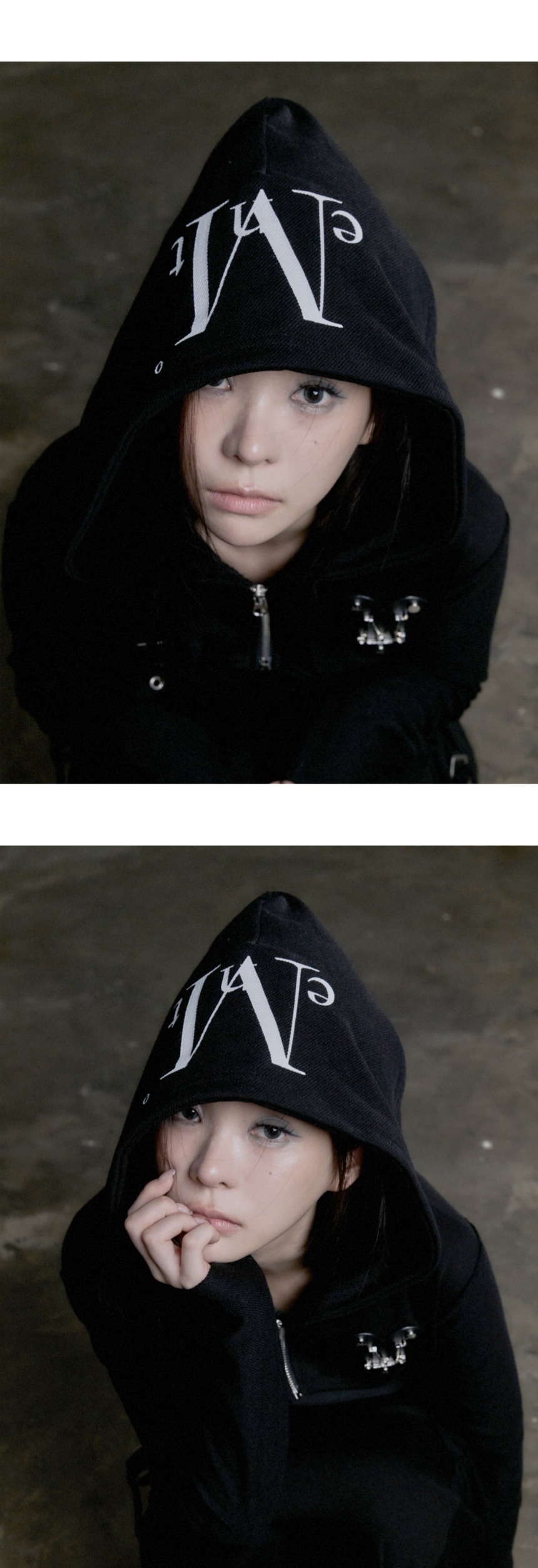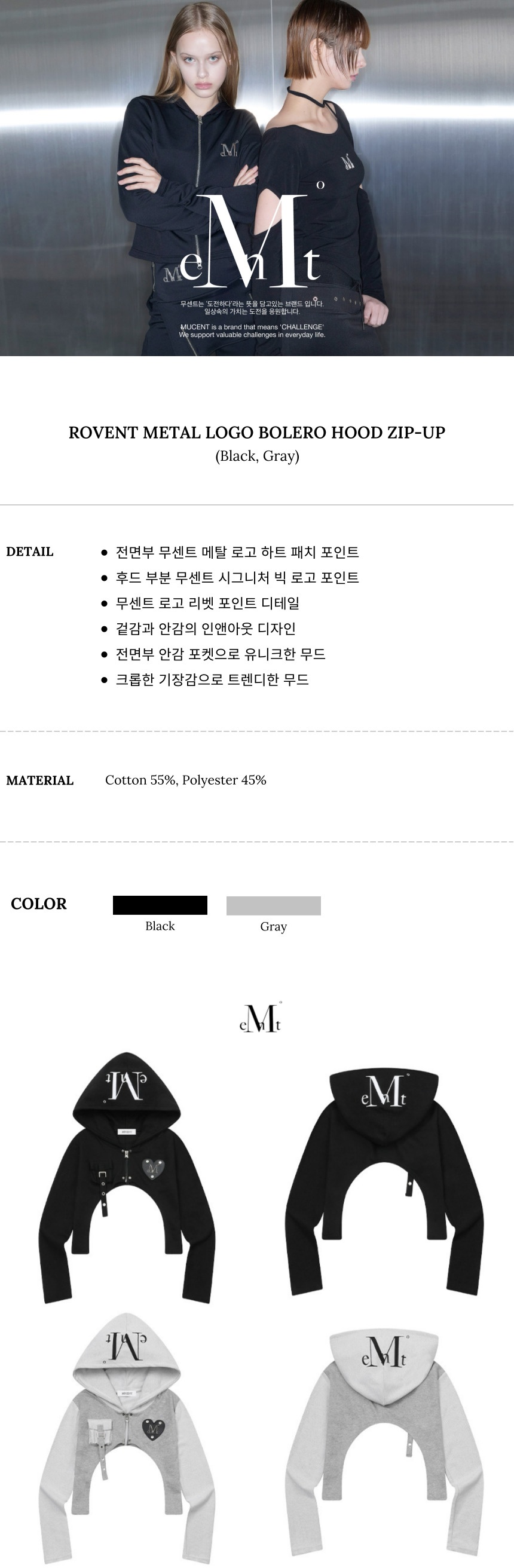 MUCENT Rovent Metal Logo Bolero Hood Zip-up (2Color) Black