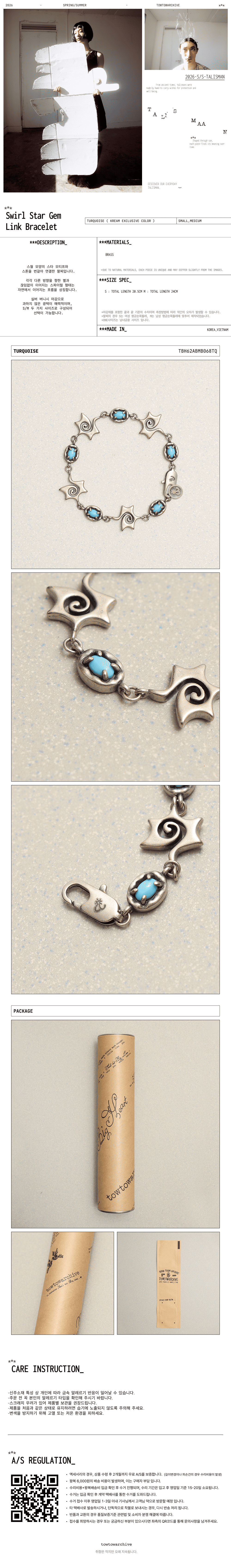 [KREAM 단독] 토우토우아카이브 스월 스타 젬 링크 팔찌 터쿼이즈