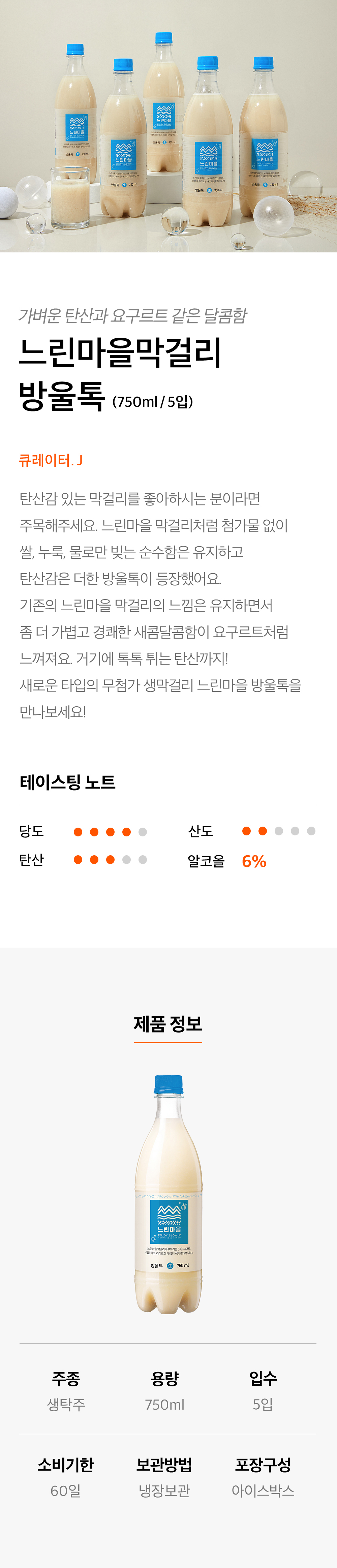 느린마을 무아스파탐 느린마을막걸리 방울톡 750ml 5입