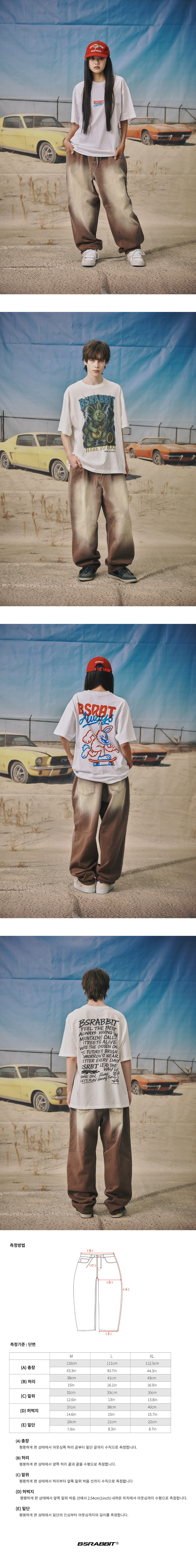 비에스래빗 미드90 배기 데님 팬츠 와일드 워싱 브라운