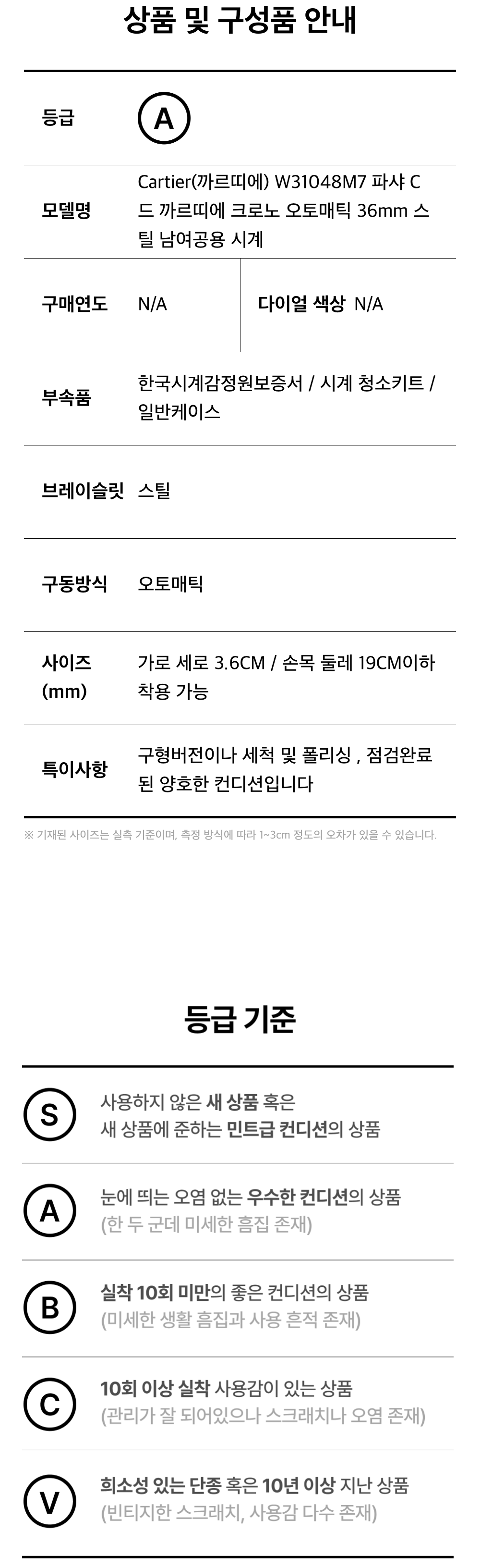 까르띠에 W31048M7 파샤 C 드 까르띠에 크로노 오토매틱 36mm 스틸 남여공용 시계aa59405