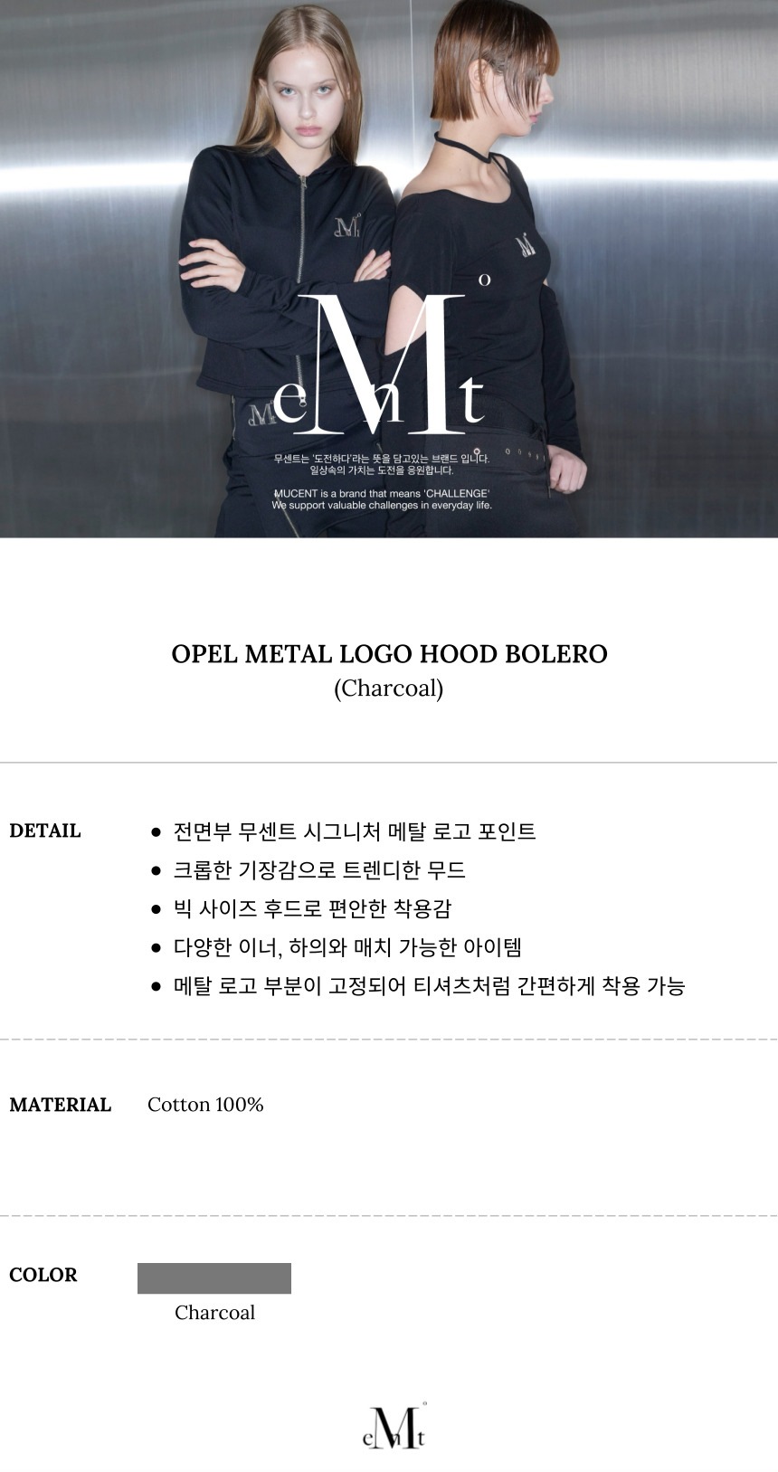무센트 오펠 메탈 로고 후드 볼레로 차콜