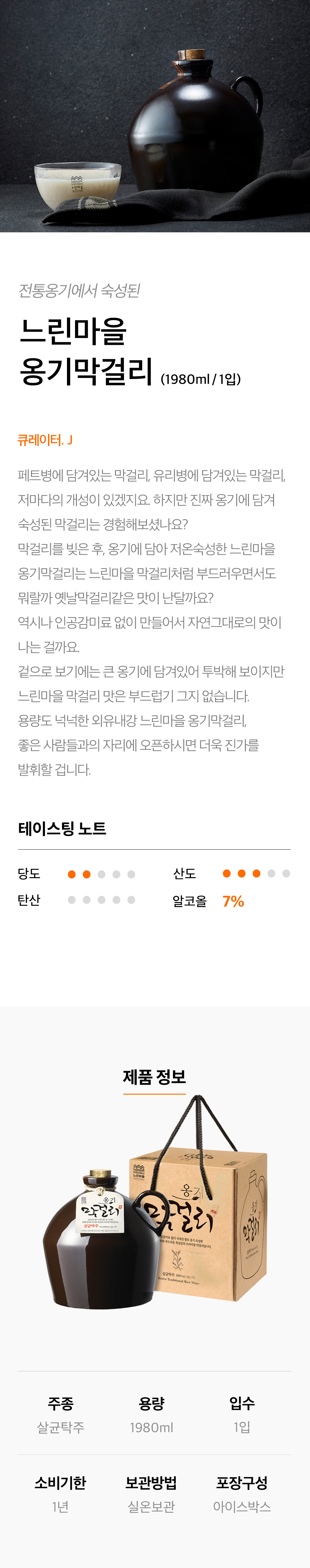 느린마을 옹기막걸리 7도 1980ml 술 선물세트