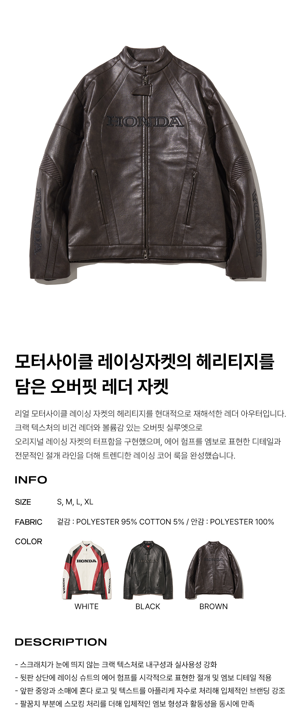 혼다 엔지니어드 레더 오리지널 모터사이클 자켓 브라운